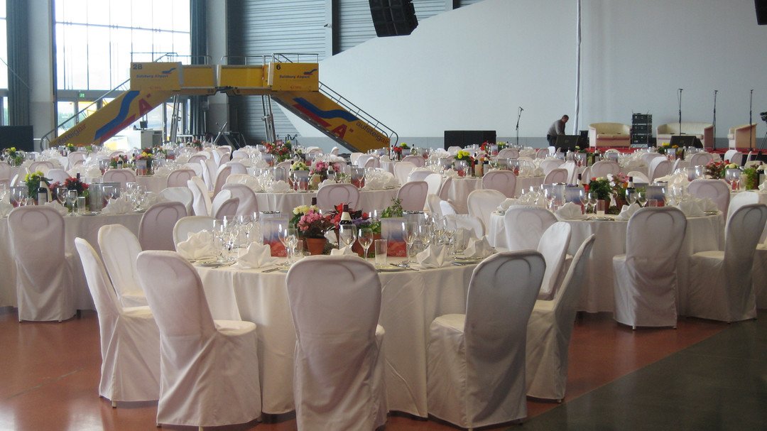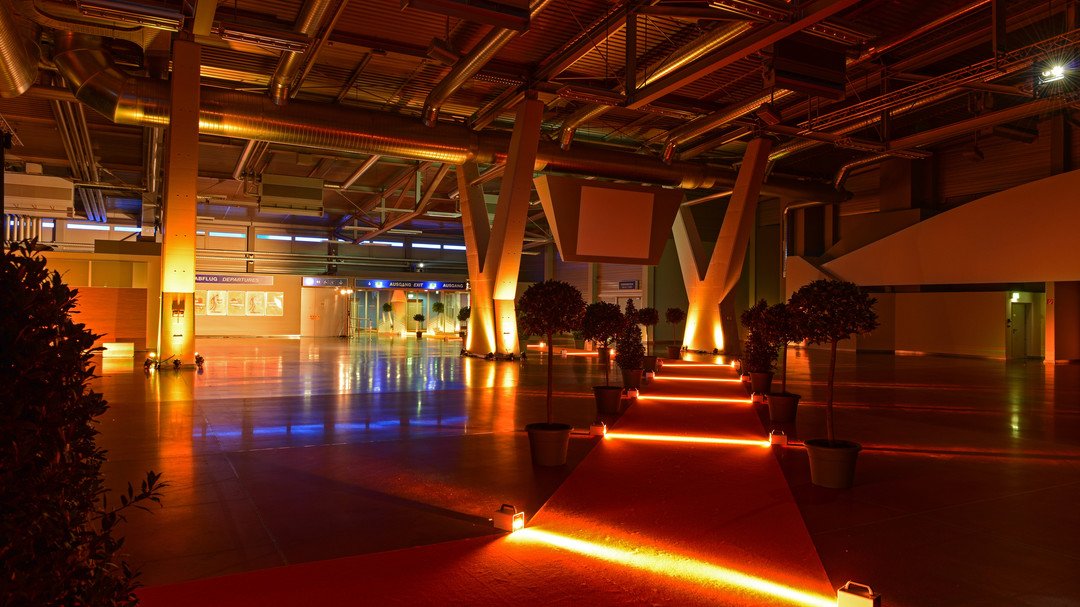 As part of Salzburger Flughafen GmbH, amadeus terminal 2 guarantees a total of 2600m² of multifunctional floor space for events. Smaller functions can also be staged to perfection by taking advantage of the mobile separating walls. Not many people can claim to have dined in style like this – or to have danced – between the check-in counters and gates, or with a fantastic sweeping view over the runway to the magnificent mountain scenery beyond!